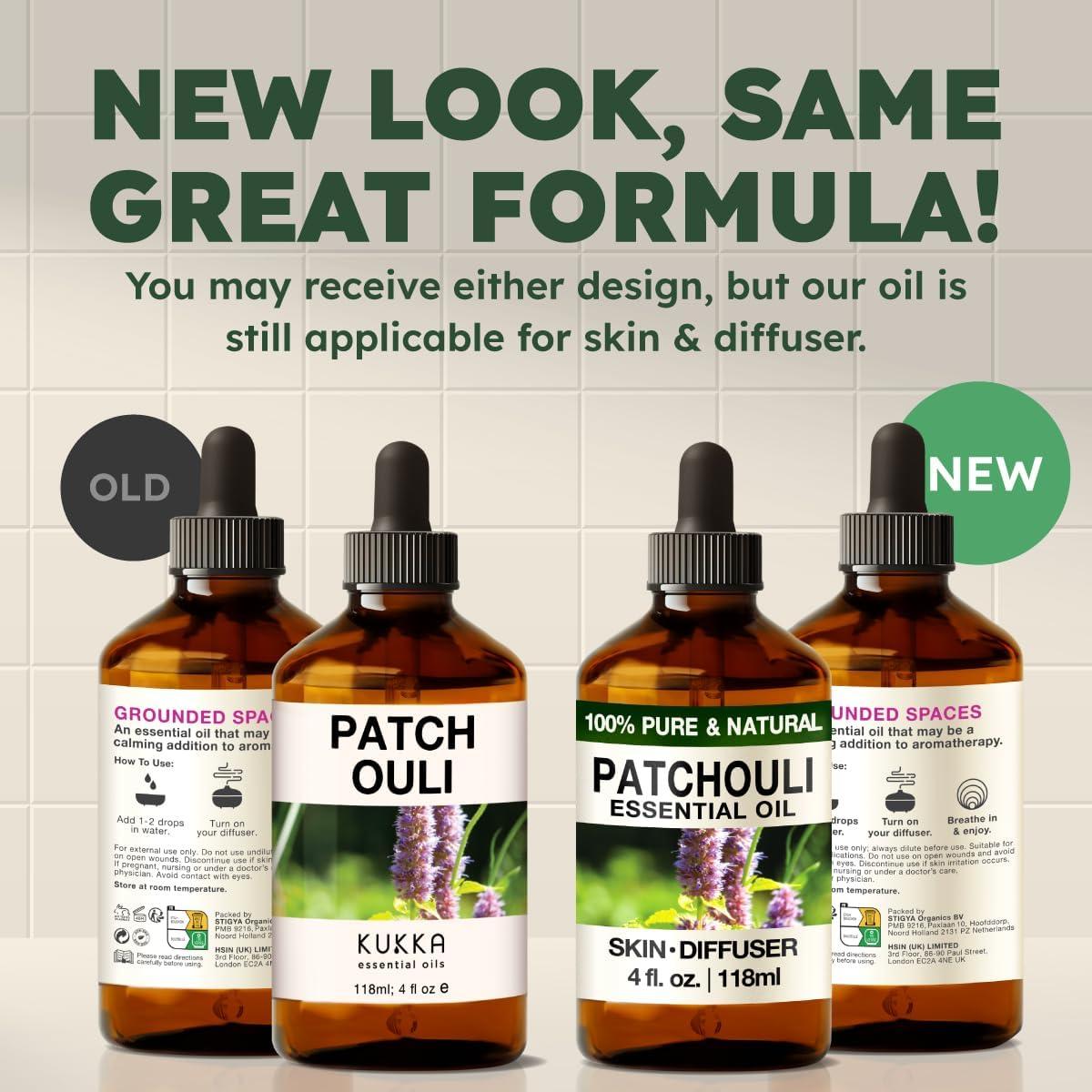 Kukka Basil Essential Oil for Diffusers – 4 Fl Oz – 100% Pure Natural Basil Oil for Skin & Aromatherapy Scent Massage Candles & Soaps Making Scent(Patchouli)