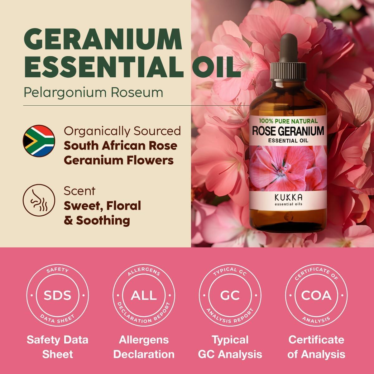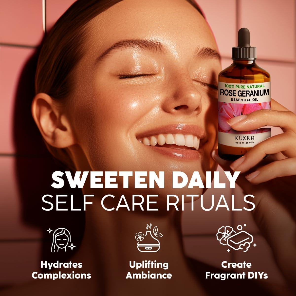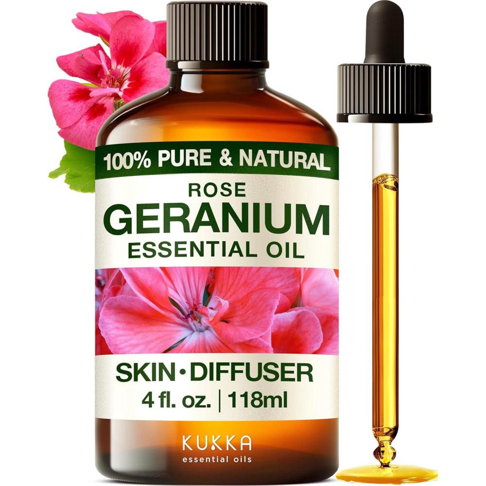 Kukka Basil Essential Oil for Diffusers – 4 Fl Oz – 100% Pure Natural Basil Oil for Skin & Aromatherapy Scent Massage Candles & Soaps Making Scent(Rose Geranium)
