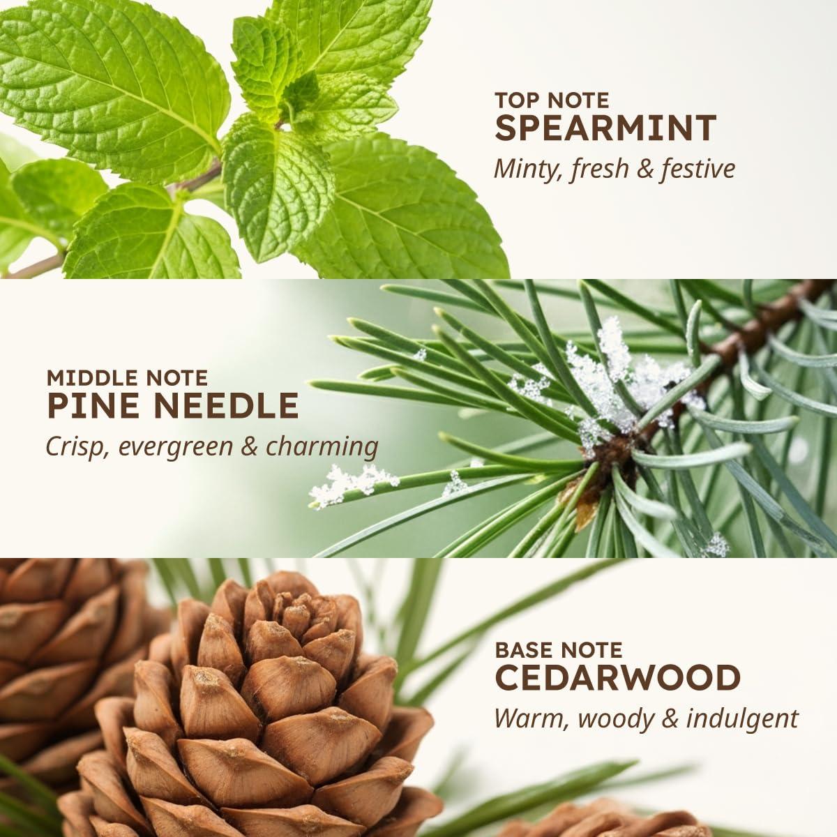 Commitment To Aroma. Crafted from spearmint essential oil, pine needle, and cedarwood essential oil, this blend ensures a rich, authentic scent experience that appeals to eco-conscious lifestyles during the festive season.