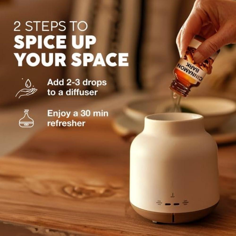 Cinnamon bark essential oil for diffuser. Cinnamon bark diffuser oil exudes a warm and spicy scent that many may be ideal for aromatherapy purposes. Just add 1-2 drops to a diffuser to enjoy its soothing scent.