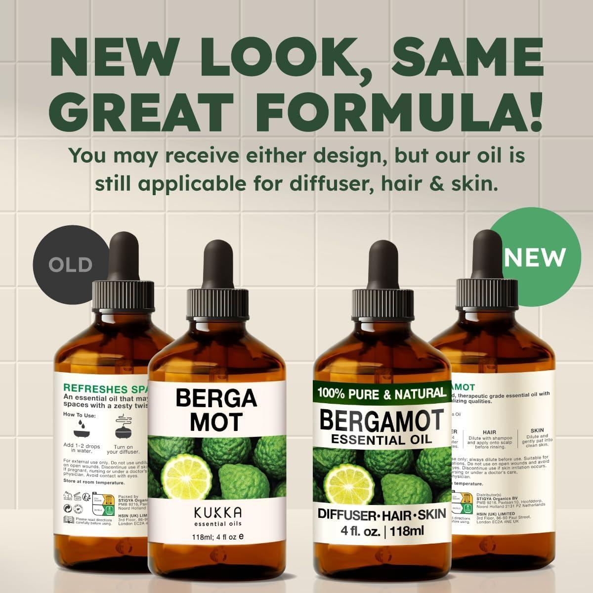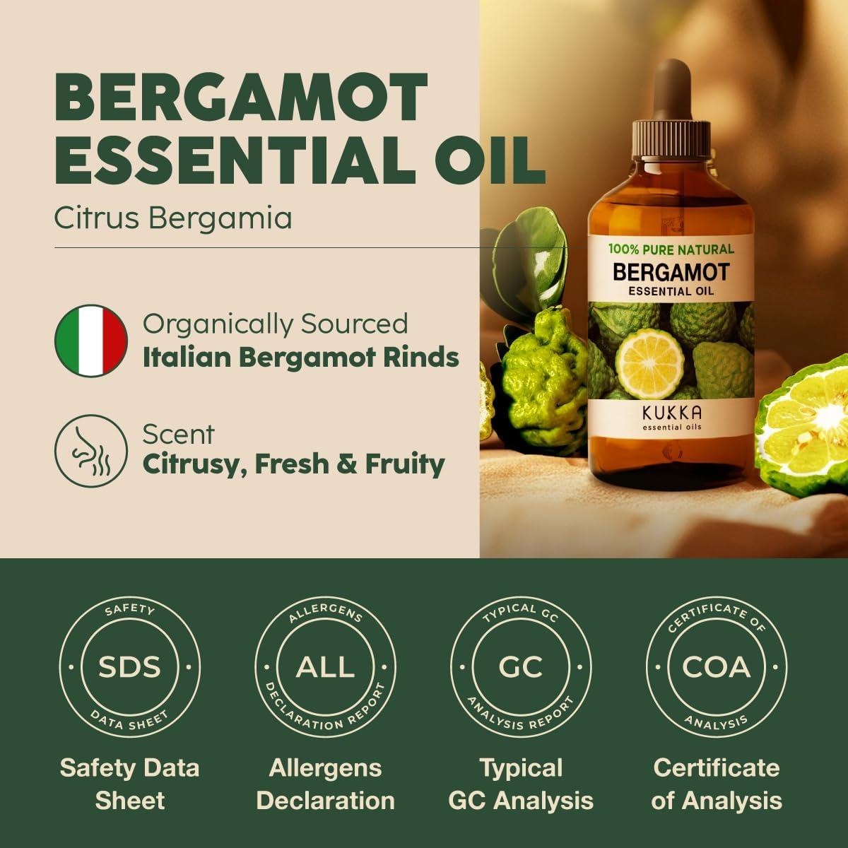KUKKA essential oils 100% Pure & Natural Peppermint Oil for Skin, Hair, Diffuser, & Soap Making DIY(4 Fl Oz/118 ml)(Bergamot)