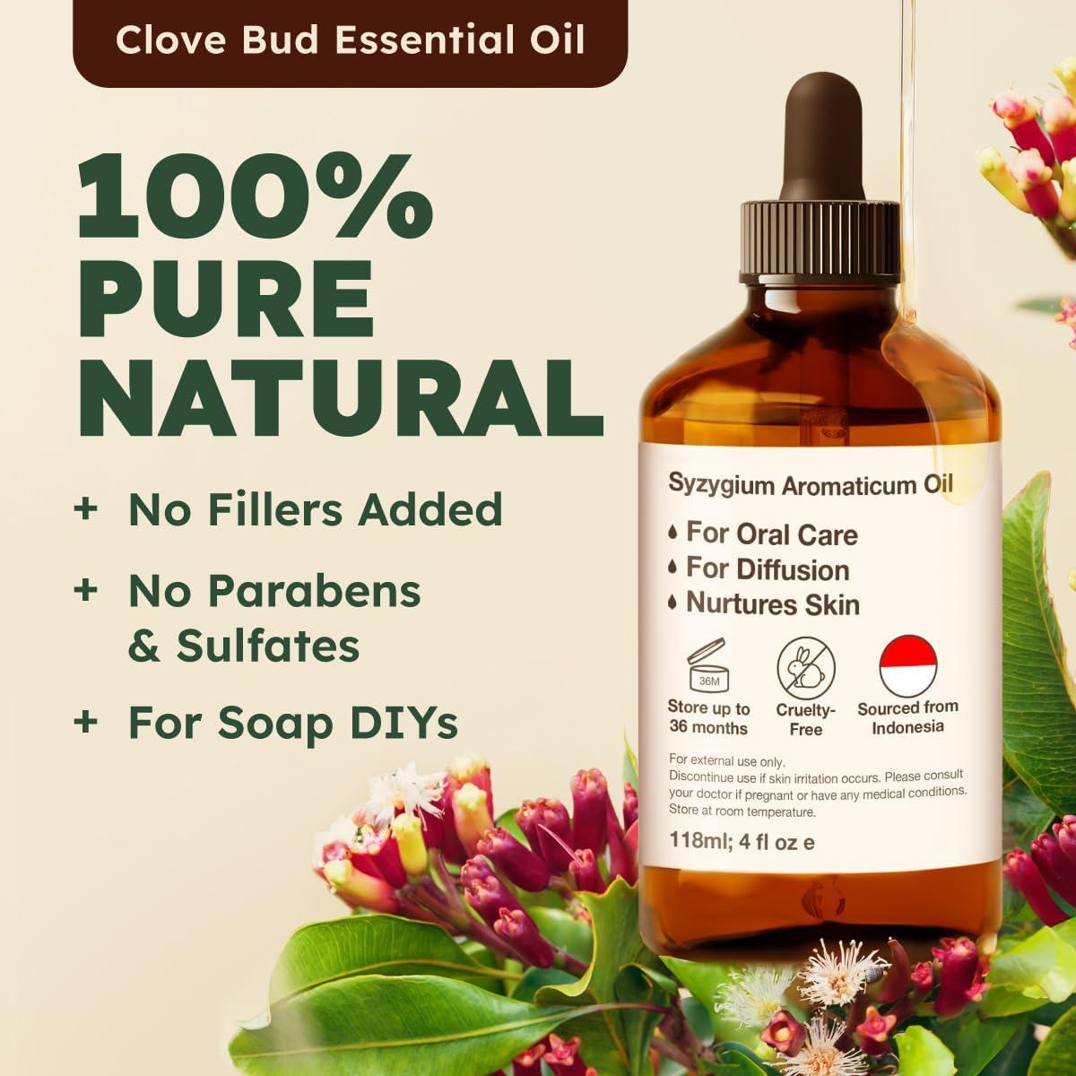 KUKKA essential oils 100% Pure & Natural Peppermint Oil for Skin, Hair, Diffuser, & Soap Making DIY(4 Fl Oz/118 ml)(Clove)