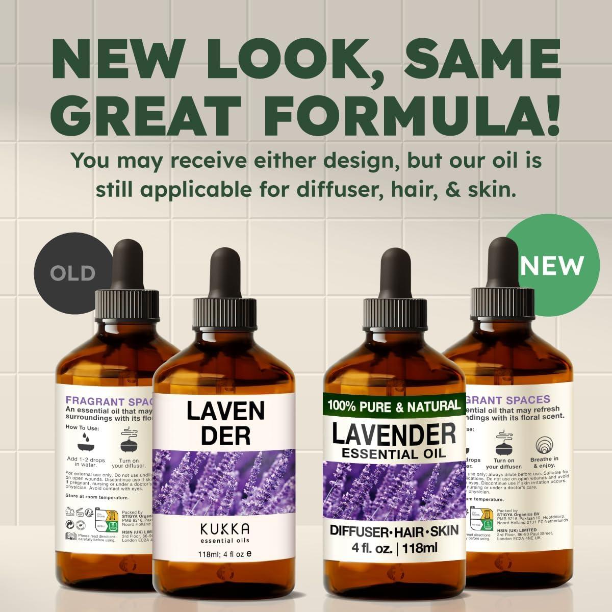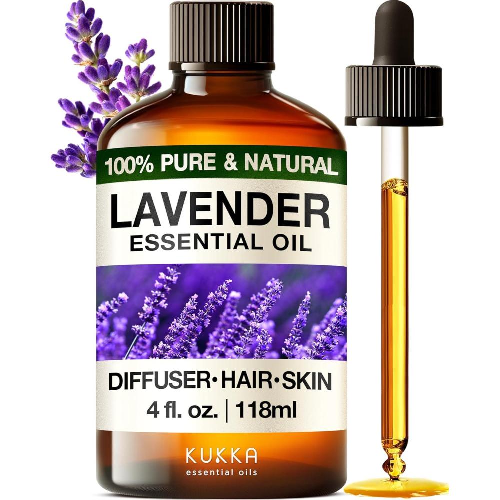 KUKKA essential oils 100% Pure & Natural Peppermint Oil for Skin, Hair, Diffuser, & Soap Making DIY(4 Fl Oz/118 ml)(Lavender)