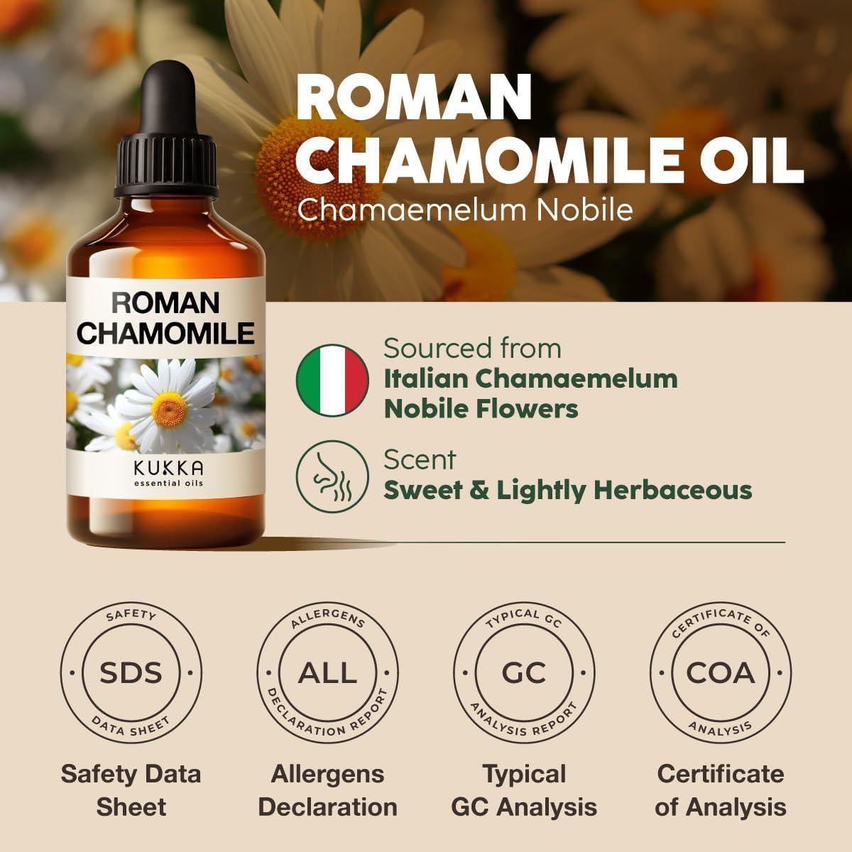 KUKKA essential oils 100% Pure & Natural Peppermint Oil for Skin, Hair, Diffuser, & Soap Making DIY(4 Fl Oz/118 ml)(Roman Chamomile)