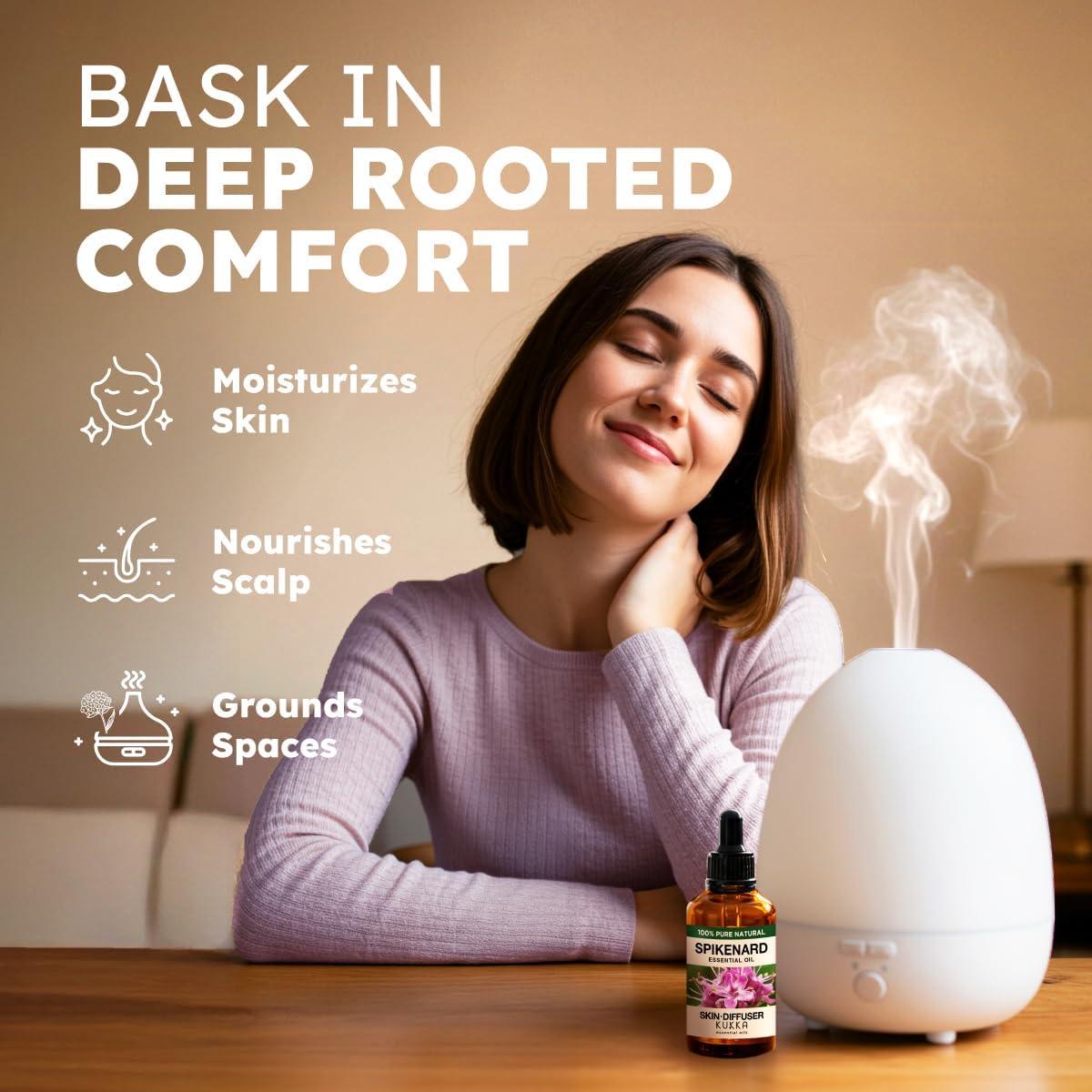 A Touch Of Calm Amidst Busy Days. Inhale the earthy aroma of spikenard essential oil in your diffuser as part of your daily ritual. Its calming scent supports mental clarity and calm, enhancing emotional well-being with every breath.