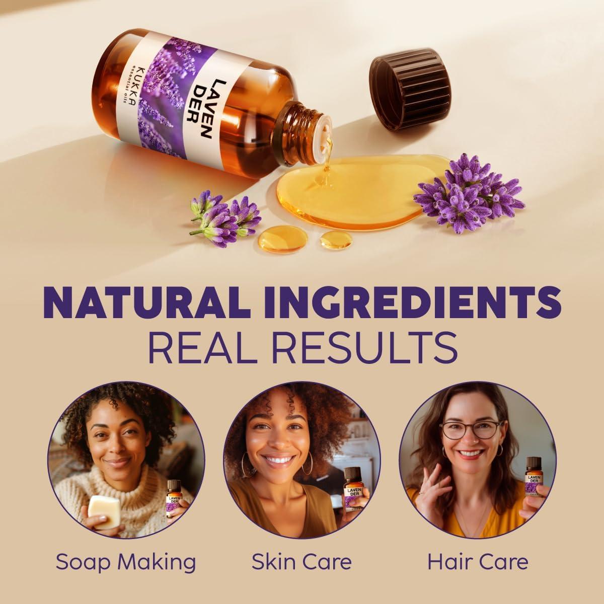 Lavender Essential Oil for Diffuser Skin & Hair - 0.34 Fl Oz - 100% Pure Lavender Oil for Relaxation & Nourishment & Soap Making Scent - Lavender Essential Oil Pure by Kukka